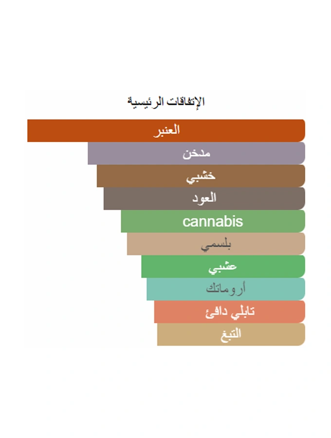يتوسّطه عبق من القهوة الداكنة، التبغ، والخشب المدخن، مما يخلق إحساسًا دافئًا وغنيًا بطابع شرقي فاخر.