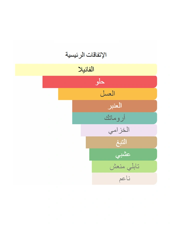 يتوسّطه عبق دافئ من الفانيليا الكريمية مع لمسة من البخور، ليضيف طابعًا حلوًا مدخّنًا يعزّز الجاذبية.