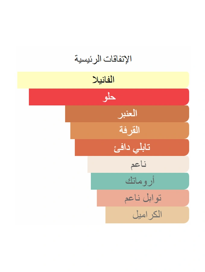 تستقر على مزيج دافئ من الفانيليا، التونكا، وخشب العنبر مع لمسة من الأخشاب العطرية، تمنح العطر ثباتًا رائعًا وأثراً حلوًا يدوم لساعات طويلة.